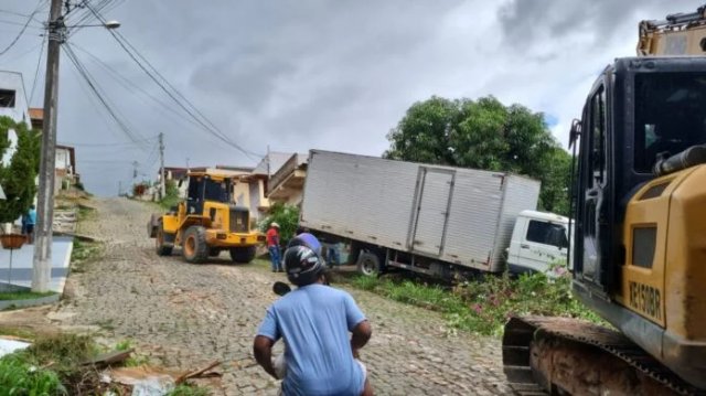De acordo com informações preliminares, o motorista perdeu o controle da direção ao tentar manobrar em uma rua íngreme. O veículo, um caminhão Volkswagen de carga, acabou ficando suspenso sobre o muro da casa, com as rodas dianteiras no ar — uma cena que assustou moradores e chamou a atenção de quem passava pelo local.