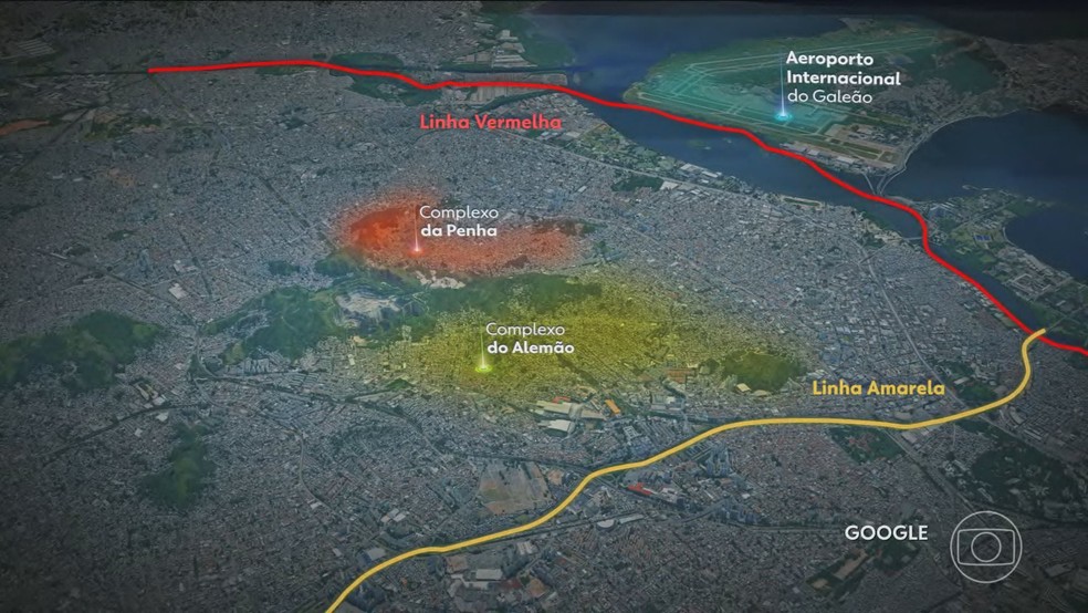 As 27 favelas dos dois complexos, na Zona Norte do Rio, ficam próximas a duas importantes vias da cidade: a Linha Vermelha, que liga o Centro à Baixada Fluminense e dá acesso ao Aeroporto Internacional do Galeão, e a Linha Amarela, que liga a Barra da Tijuca à Ilha do Governador.