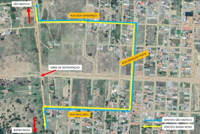 Durante o período de 25/11 (terça-feira) a 15/12 (segunda-feira), o Departamento de Edificações e de Rodovias do Espírito Santo (DER-ES) manterá o desvio pelas ruas Mucurici, Geraldo Pinto e Boa Esperança, tanto pra quem vai de Guriri para o Centro de São Mateus, quanto pra quem vem no sentido contrário (veja foto do mapa).