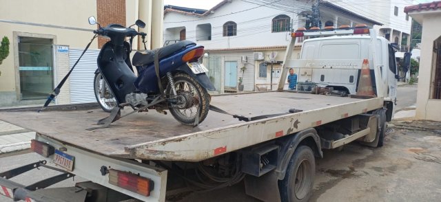 A motocicleta foi guinchada para o pátio credenciado do Detran, onde permanece à disposição da autoridade policial.