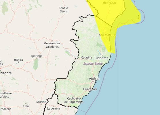 O Instituto Nacional de Meteorologia (Inmet) emitiu, nesta quinta-feira (27), um alerta amarelo para chuvas intensas em oito municípios do Norte do Espírito Santo. O aviso é válido até as 10h desta sexta-feira (28) e indica possibilidade de chuva de até 50 mm por dia, além de ventos variando entre 40 e 60 km/h.