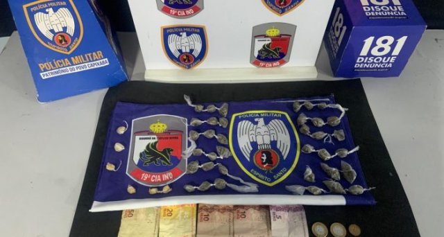 Na revista pessoal, os militares encontraram uma quantia em dinheiro e uma pedra de crack. Em seguida, durante buscas no entorno, foram apreendidas diversas buchas de maconha e outras pedras de crack, escondidas em uma bolsa e em recipientes próximos ao local onde o suspeito estava.