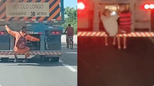Especialistas destacam que segurar-se na parte traseira de um caminhão em movimento coloca a vida do “caroneiro” e de terceiros em risco, pois a estrutura do veículo não oferece proteção alguma. Em situações de freadas bruscas, curvas ou colisões, a pessoa pode facilmente cair no asfalto ou ser arremessada contra outros veículos.
