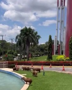 Nas gravações, é possível ver várias capivaras aproveitando o chafariz como se fosse uma piscina, entrando e saindo da água tranquilamente, comportamento que chamou a atenção de quem passava pelo local.