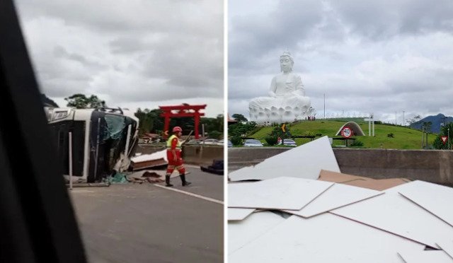 Uma carreta tombou na tarde deste domingo (18) em um trecho da BR-101, em Ibiraçu (ES), em frente ao monumento conhecido como Buda de Ibiraçu, resultando em bloqueio parcial da rodovia federal e reflexos no trânsito na região.