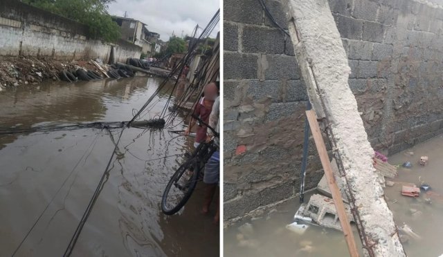 Um grande alagamento também tomou conta da rua, o que dificulta com que moradores possam se locomover pelo local.