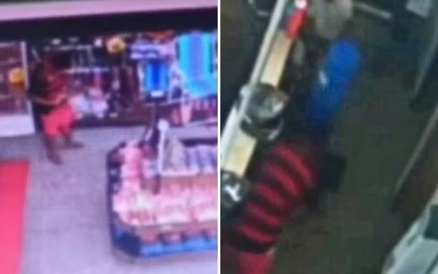Imagens do circuito interno de monitoramento registraram o momento em que o suspeito entra no supermercado e vai até a seção onde ficam as facas. Ele pega uma, parece analisar o objeto e, em seguida, vai até Natasha, quando passa a golpeá-la.