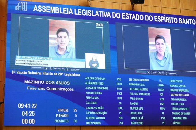 O deputado Mazinho dos Anjos (PSDB) participou de forma virtual da sessão ordinária desta quarta-feira (25) para tratar da aplicação, no Espírito Santo, da Lei Complementar Federal 226/2026, que autoriza Estados, Distrito Federal e Municípios a efetuar aos servidores o pagamento retroativo de progressões e benefícios que ficaram congelados durante a pandemia de Covid-19.