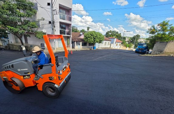 A pavimentação teve início pela Rua Paraná e seguiu pelas ruas Alagoas, Conceição da Barra e Acre, e vai avançar até contemplar todas as vias previstas nesta etapa.