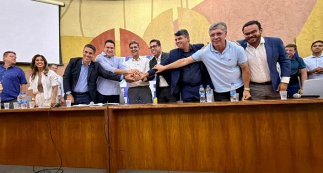 O anúncio foi realizado na sede dos partidos Progressistas e União Brasil, em Vitória, e contou com a presença de diversas lideranças políticas.