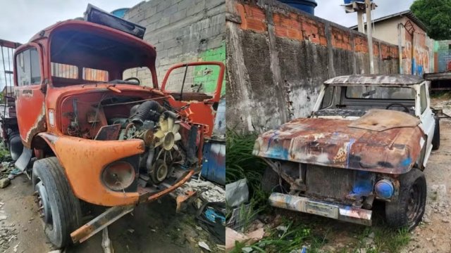 No pátio da oficina, foram encontrados diversos outros veículos que estavam em estado avançado de deterioração.